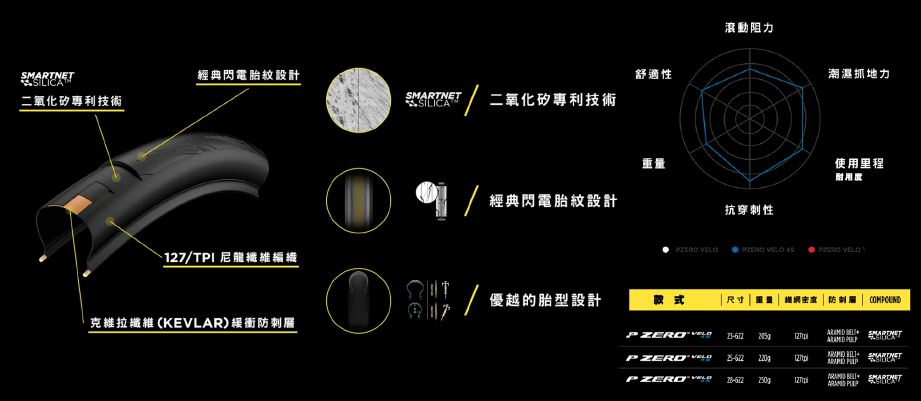 我覺得他有達到我的期望,使用的輪胎款式為 PIRELLI P ZERO™ VELO 4S。
